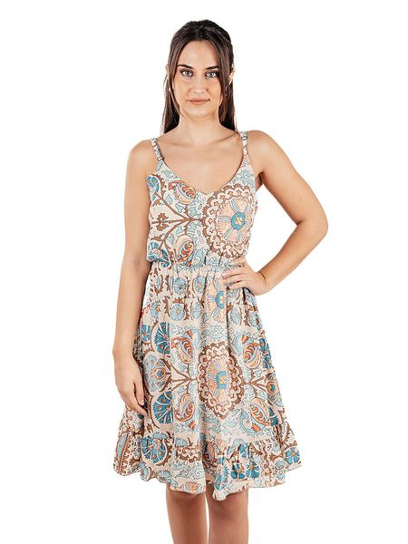 – ramiączka: regulowane- dekolt: V- talia: elastyczna- dolny brzeg: z falbankami- krój: taliowany- wzór: na całości