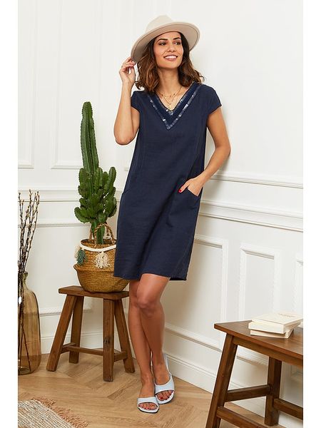 sukienki ze sklepu limango.pl sukienki le monde du lin odzież damska le monde du lin sukienki proste niebieskie sukienki sukienki mini sukienki na co dzień sukienki bez rękawów odzież damska limango.pl sukienki bez ramiączek
