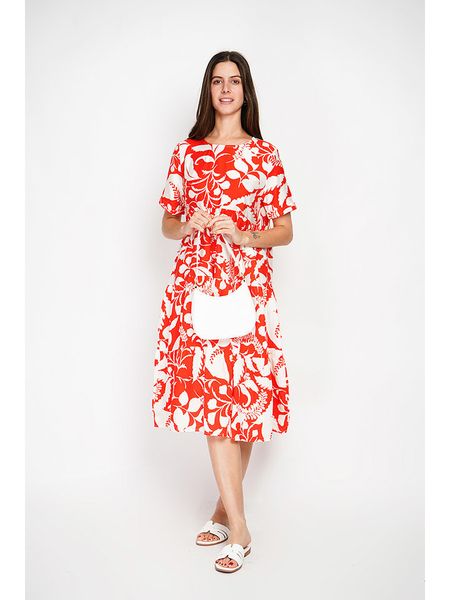 – z dodatkiem lnu- dekolt: okrągły- detale: falbany- krój: rozkloszowany- wzór: na całościWskazówka: Na metkach odzieży tej marki znajdują się rozmiary francuskie. Rozmiarówka została przez nas przeliczona. Podane do wyboru warianty rozmiarów odpowiadają standardowym europejskim rozmiarom konfekcji. Prosimy zapoznać się z zamieszczonym objaśnieniem rozmiarów: