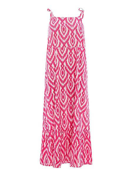 – czysta wiskoza- ramiączka: regulowane- dekolt: karo- dolny brzeg: z falbankami- krój: prosty- wzór: na całości