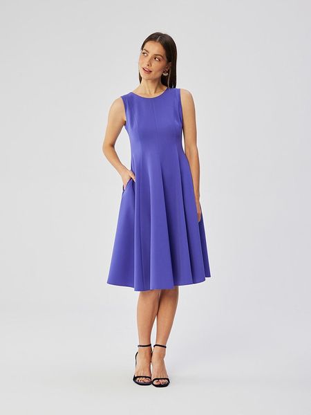 – dekolt: okrągły- zapięcie: suwak na plecach- kieszenie: wpuszczane- krój: rozkloszowany- look: jednokolorowy