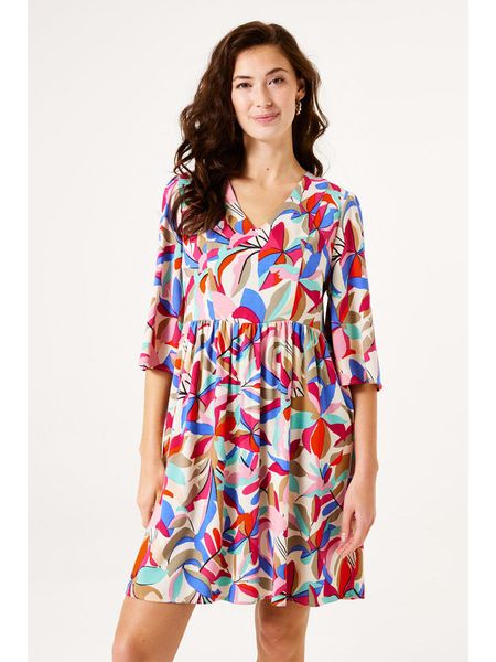 – dekolt: V- długość rękawa: 3/4- krój: litera A- dolny brzeg: z falbankami- wzór: na całości