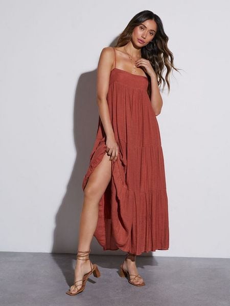 odzież damska limango.pl sukienki z falbankami odzież damska la angels sukienki bez kołnierzyka sukienki la angels sukienki ze sklepu limango.pl sukienki maxi sukienki z dekoltem karo sukienki bez rękawów brązowe sukienki
