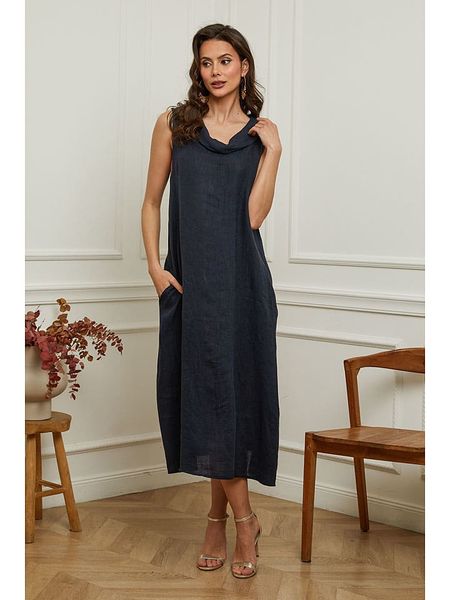 – czysty len- ramiączka: szerokie- dekolt: kaskada- kieszenie: wpuszczane- krój: luźny- look: jednokolorowy