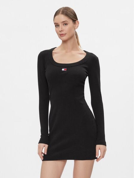 Tommy Jeans Sukienka dzianinowa Tjw Badge Rib Bodycon Ls DW0DW17424 Czarny Slim Fit