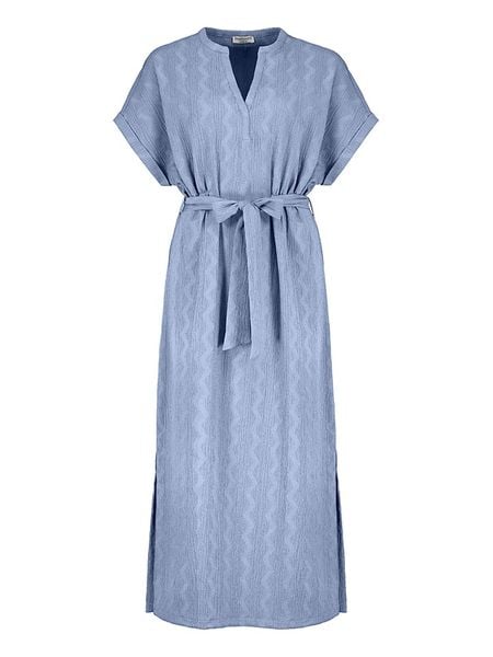 – kołnierz: stójka- dekolt: V- zdejmowany pasek: tkanina- dolny brzeg: z rozcięciem- krój: luźny- wzór: na całości