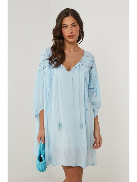 sukienki bez rękawów niebieskie sukienki odzież damska le monde du lin sukienki bez kołnierzyka sukienki mini sukienki ze sznurowanym dekoltem sukienki ze sklepu limango.pl odzież damska limango.pl sukienki bez ramiączek sukienki le monde du lin