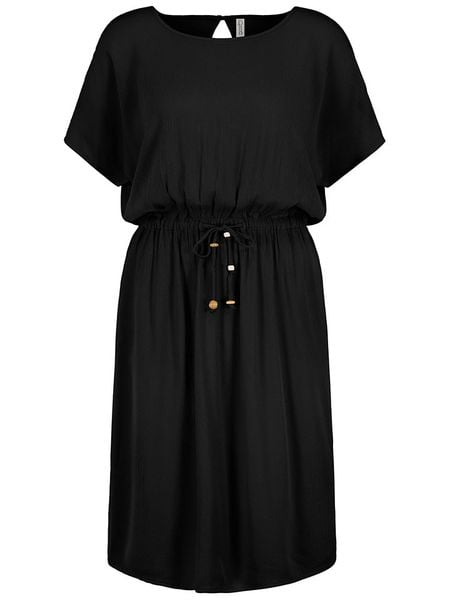 – czysta wiskoza- dekolt: okrągły- zapięcie: guzik na plecach- talia: ściągacz tunelowy- kieszenie: wpuszczane- krój: taliowany- look: jednokolorowy