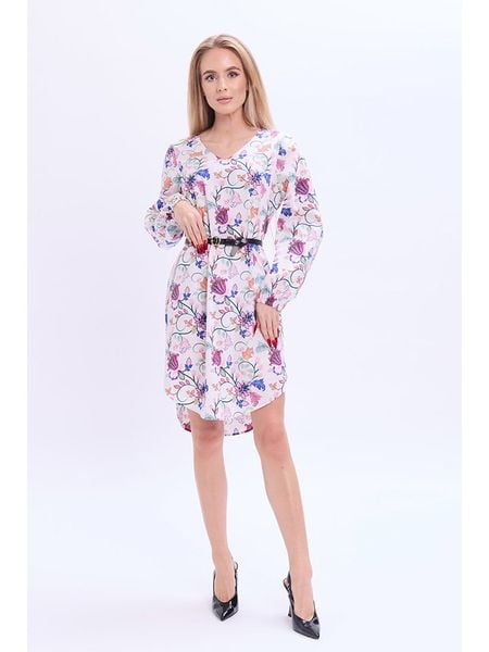 – czysta bawełna- dekolt: V- rękaw: bufiasty- zdejmowany pasek: skóra syntetyczna- dolny brzeg: zaokrąglony- krój: prosty- wzór: kwiatowy