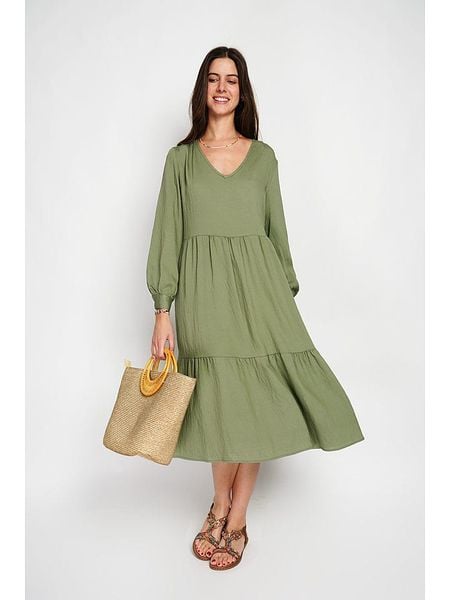 – z dodatkiem lnu- dekolt: V- rękaw: bufiasty- dolny brzeg: z falbankami- krój: rozkloszowany- look: jednokolorowyUwaga: Na metkach odzieży tej marki znajdują się rozmiary francuskie. Rozmiarówka została przez nas przeliczona. Podane do wyboru warianty rozmiarów odpowiadają standardowym europejskim rozmiarom konfekcji. Prosimy zapoznać się z zamieszczonym objaśnieniem rozmiarów.