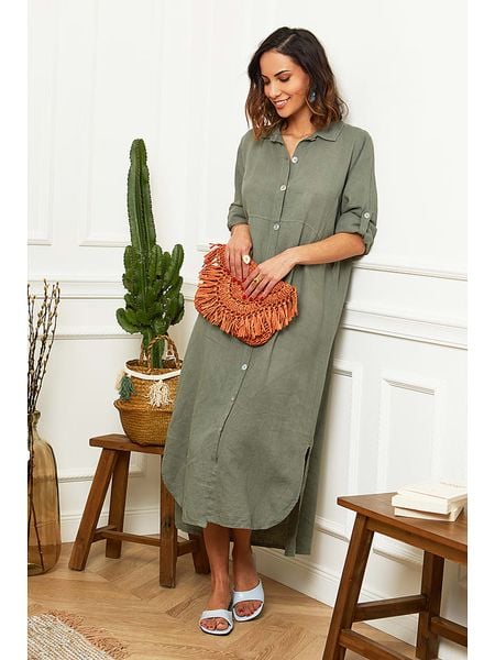 Le Monde du Lin Lniana sukienka w kolorze oliwkowym rozmiar: 34/36