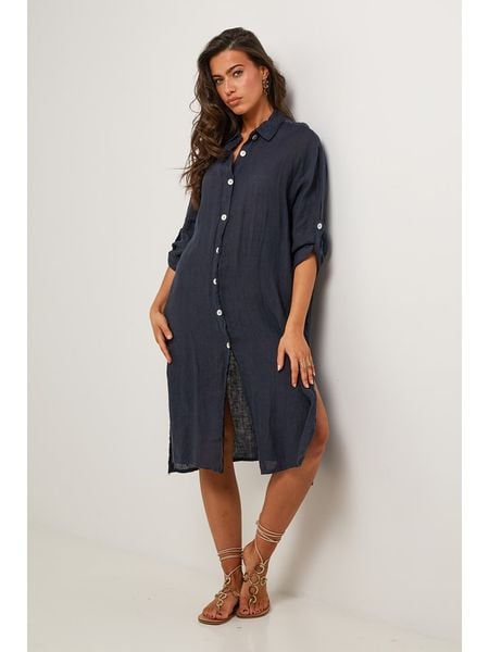 odzież damska le monde du lin sukienki bez ramiączek sukienki bez kołnierzyka sukienki bez rękawów sukienki midi odzież damska limango.pl sukienki le monde du lin niebieskie sukienki sukienki z klasycznym kołnierzykiem sukienki ze sklepu limango.pl