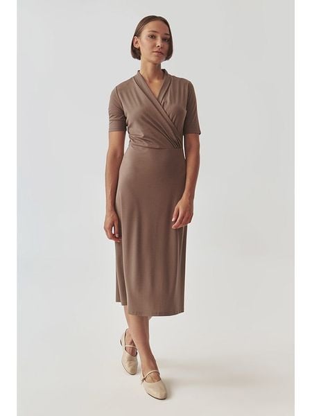 sukienki bez kołnierzyka sukienki ze sklepu limango.pl brązowe sukienki sukienki tatuum odzież damska limango.pl sukienki bez ramiączek sukienki midi odzież damska tatuum sukienki bez rękawów sukienki rozkloszowane