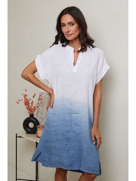 – czysty len- dekolt: z rozcięciem- krój: luźny- wzór: przejście kolorówUwaga: Na metkach odzieży tej marki znajdują się rozmiary francuskie. Rozmiarówka została przez nas przeliczona. Podane do wyboru warianty rozmiarów odpowiadają standardowym europejskim rozmiarom konfekcji. Prosimy zapoznać się z zamieszczonym objaśnieniem rozmiarów.