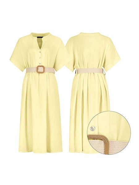 – dekolt: z rozcięciem- zapięcie: skrócona listwa guzikowa- szlufki na pasek: tak- detale: pasek- krój: taliowany- look: jednokolorowy