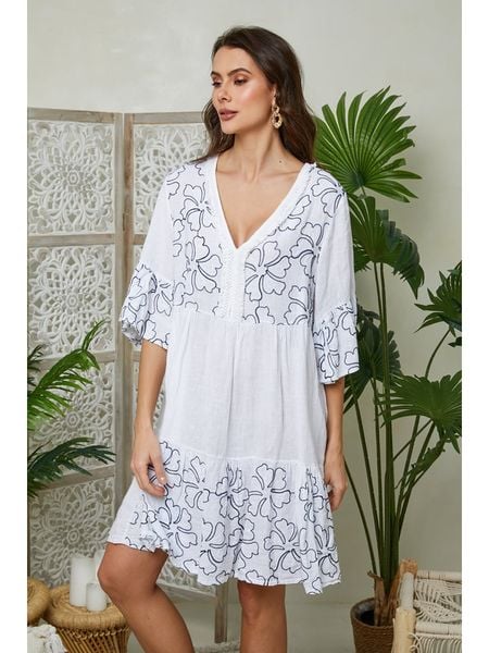– czysty len- dekolt: V- detale: falbanki- krój: luźny- wzór: mixUwaga: Na metkach odzieży tej marki znajdują się rozmiary francuskie. Rozmiarówka została przez nas przeliczona. Podane do wyboru warianty rozmiarów odpowiadają standardowym europejskim rozmiarom konfekcji. Prosimy zapoznać się z zamieszczonym objaśnieniem rozmiarów.