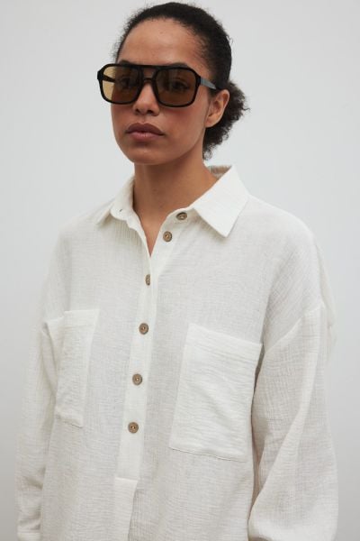 Bawełniana sukienka z kołnierzykiem w kolorze ECRU- CUEVA-M/L