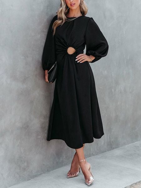 – dekolt: okrągły- zapięcie: guzik na plecach- rękaw: bufiasty – zakończenie rękawów: elastyczne- detale: wycięcia – krój: rozkloszowany- look: jednokolorowyUwaga: Podczas wybierania odpowiedniego rozmiaru należy kierować się tabelą, widoczną na ostatnim zdjęciu.
