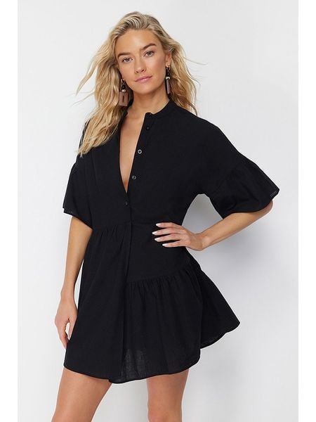 sukienki ze sklepu limango.pl odzież damska trendyol czarne sukienki sukienki bez rękawów sukienki z falbankami sukienki bez ramiączek sukienki trendyol sukienki ze stójką sukienki mini odzież damska limango.pl