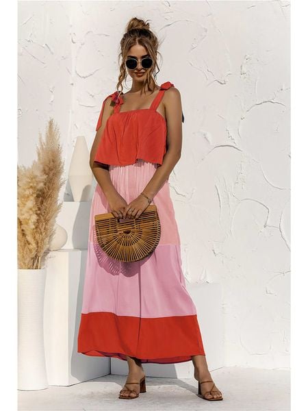 – ramiączka: szerokie- dekolt: karo- talia: elastyczna- krój: luźny- wzór: colour blocking- look: warstwy