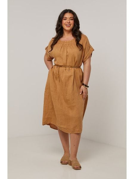 Curvy Lady Lniana sukienka w kolorze jasnobrązowym rozmiar: 40/42