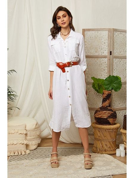 Lin Passion Lniana sukienka w kolorze białym rozmiar: 38/40