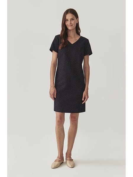 – dekolt: V- zapięcie: suwak na plecach- krój: prosty- wzór: kropki