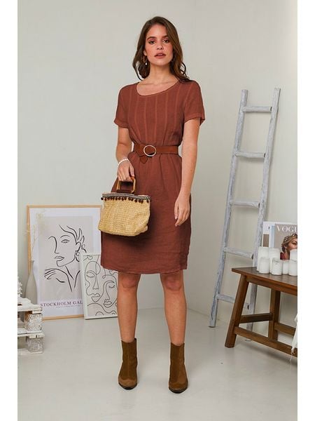odzież damska rodier lin sukienki z okrągłym kołnierzem sukienki bez ramiączek sukienki rodier lin sukienki bez rękawów sukienki na co dzień brązowe sukienki sukienki bez kołnierzyka sukienki ze sklepu limango.pl sukienki proste