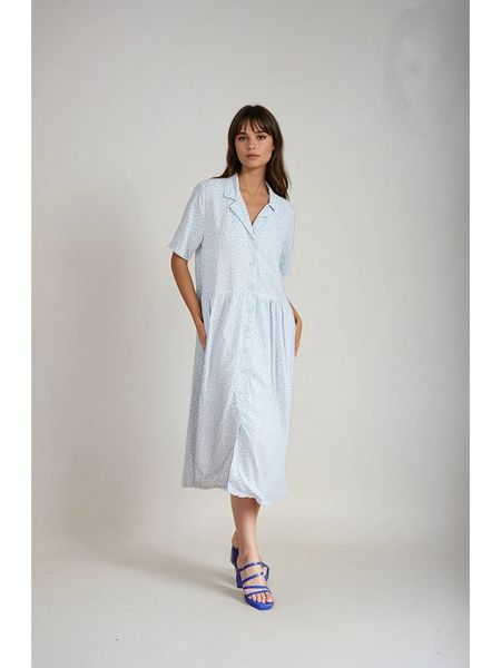 Trapezowa elegancka sukienka Ella - Błękitny Kwiat PLUS SIZE XXL OVERSIZE WIOSNA