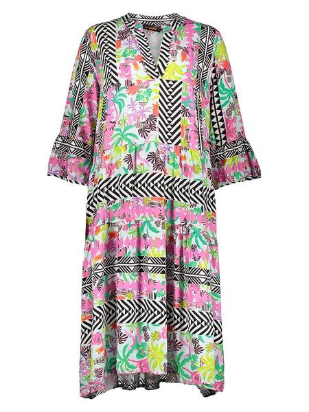 – czysta wiskoza- dekolt: V- krój rękawów: rozszerzany do dołu- długość rękawa: 3/4- krój: luźny- wzór: mix
