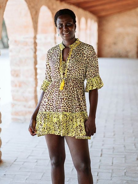 Isla Bonita by SIGRIS Sukienka w kolorze ciemnobrązowo-żółtym rozmiar: XL