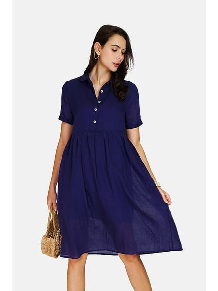 Le Jardin du Lin Lniana sukienka w kolorze granatowym rozmiar: 40