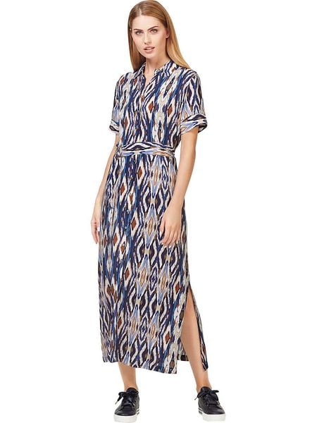 – czysta wiskoza- kołnierz: kent- zapięcie: listwa guzikowa- w talii wiązanie: tak- krój: taliowany- wzór: na całości