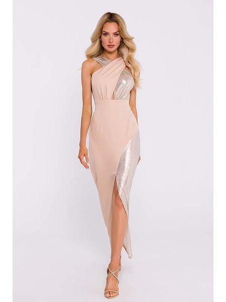 – ramiączka: na szyję- zapięcie: suwak na plecach- dolny brzeg: z rozcięciem- krój: taliowany- nadruk: metaliczny- look: jednokolorowy