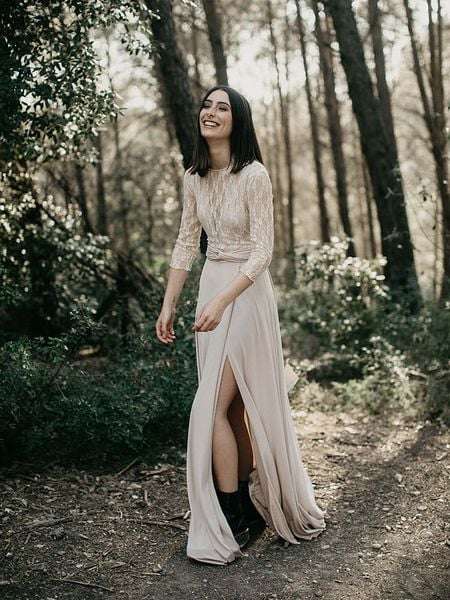 – dekolt: okrągły- zapięcie: wiązanie na plecach- długość rękawa: 3/4- dolny brzeg: z rozcięciem- detale: koronka- krój: litera A- look: jednokolorowy