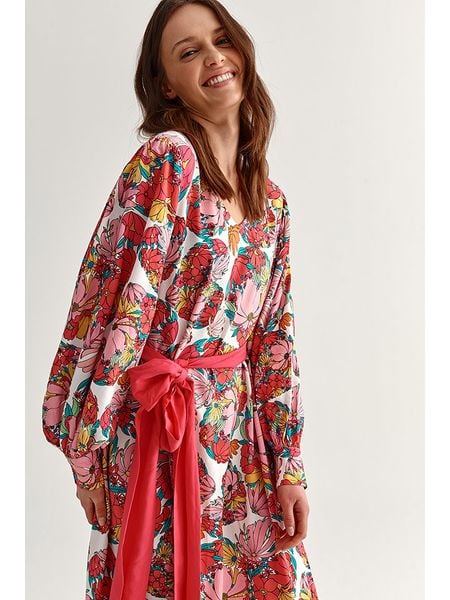– czysta wiskoza- dekolt: V- rękaw: bufiasty – w talii wiązanie: tak – krój: luźny- wzór: na całości