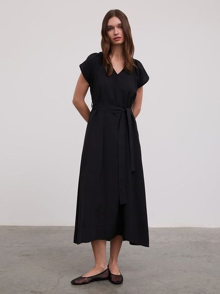 – dekolt: V- kieszenie: wpuszczane- szlufki na pasek: tak- przytwierdzony pasek: tkanina- krój: litera A- look: jednokolorowyUwaga: Przy wyborze właściwego wariantu zaleca się korzystanie z tabeli rozmiarów.
