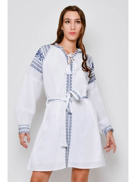– czysta bawełna- dekolt: z rozcięciem- szlufki na pasek: tak- zdejmowany pasek: tkanina- detale: haft, ozdobne wiązanie- krój: prosty- look: jednokolorowy