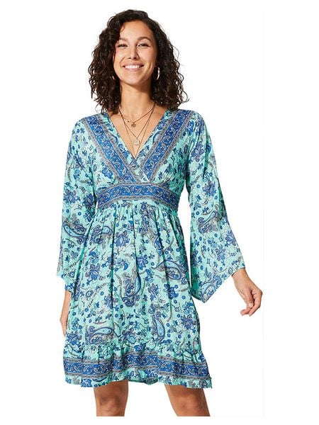 – dekolt: V- zapięcie: guzik na plecach- krój rękawów: rozszerzany do dołu- krój: rozkloszowany- wzór: orientalnyWskazówka: Na metkach odzieży tej marki znajdują się rozmiary francuskie. Rozmiarówka została przez nas przeliczona. Podane do wyboru warianty rozmiarów odpowiadają standardowym europejskim rozmiarom konfekcji. Prosimy zapoznać się z zamieszczonym objaśnieniem rozmiarów.