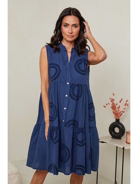 sukienki bez kołnierzyka niebieskie sukienki sukienki le monde du lin sukienki ze sklepu limango.pl sukienki bez ramiączek odzież damska limango.pl sukienki bez rękawów sukienki midi sukienki rozkloszowane sukienki z falbankami