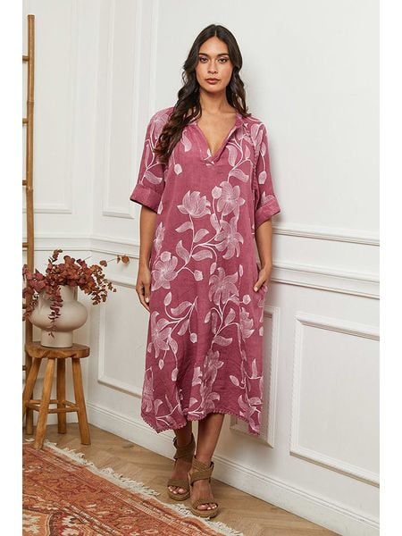 – czysty len- dekolt: V- krój: luźny- wzór: kwiatowy