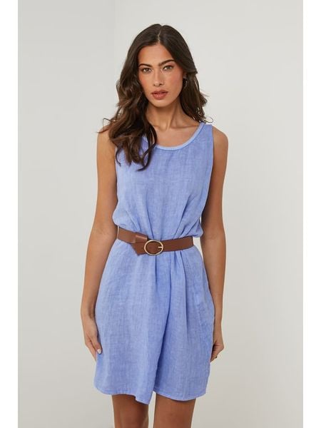 odzież damska limango.pl odzież damska le monde du lin sukienki z okrągłym kołnierzem sukienki z dekoltem na plecach sukienki bez ramiączek sukienki ze sklepu limango.pl sukienki bez rękawów sukienki bez kołnierzyka niebieskie sukienki sukienki le monde du lin