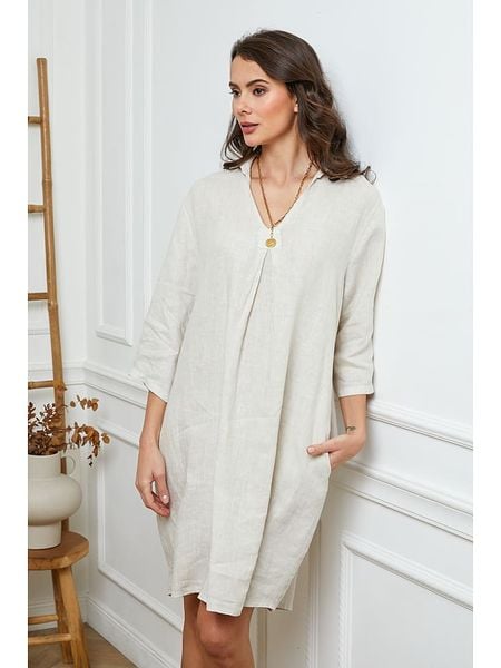 Fleur de Lin Lniana sukienka w kolorze beżowym rozmiar: M
