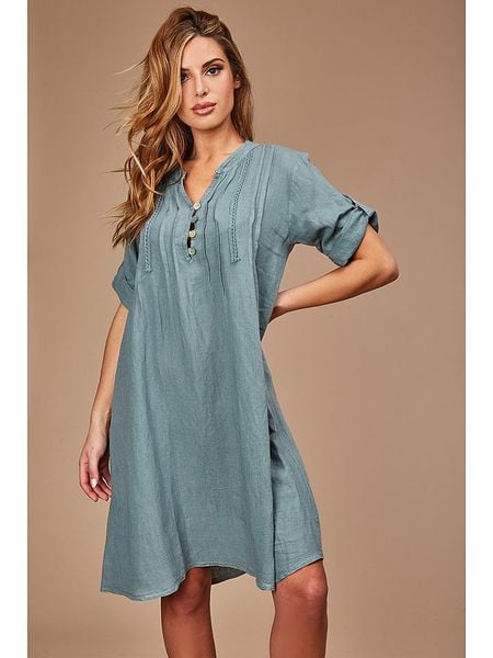 100% LIN Lniana sukienka w kolorze khaki rozmiar: 38/40