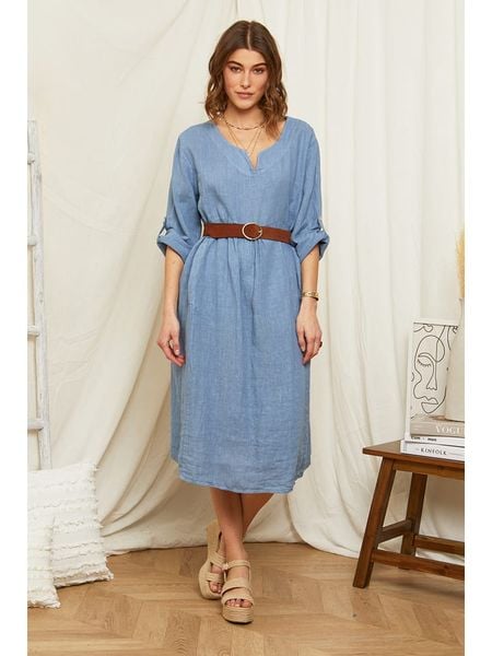 Rodier Lin Lniana sukienka w kolorze błękitnym rozmiar: M/L