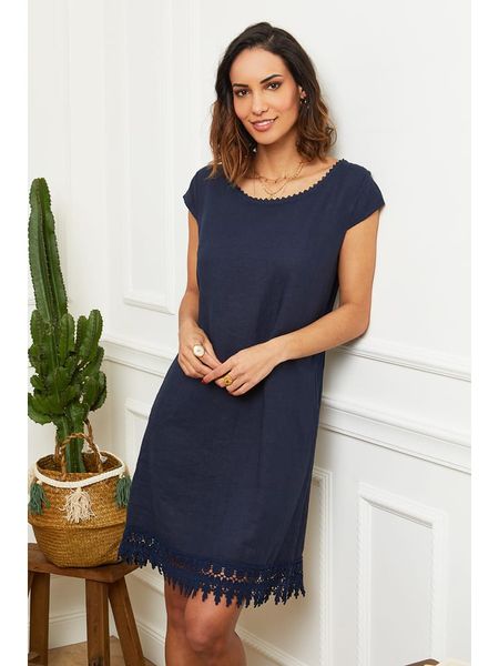 – czysty len- dekolt: okrągły- kieszenie: wpuszczane- detale: szydełkowana koronka- krój: prosty- look: jednokolorowyUwaga: Na metkach odzieży tej marki znajdują się rozmiary francuskie. Rozmiarówka została przez nas przeliczona. Podane do wyboru warianty rozmiarów odpowiadają standardowym europejskim rozmiarom konfekcji. Prosimy zapoznać się z zamieszczonym objaśnieniem rozmiarów.