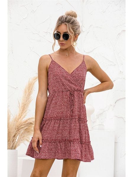 – ramiączka: regulowane- dekolt: V- talia: ściągacz tunelowy- dolny brzeg: z falbankami- detale: falbanki- krój: litera A- wzór: kwiatowy