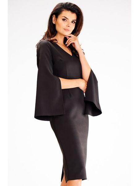 – dekolt: V- zapięcie: suwak na plecach- krój rękawów: rozszerzany do dołu- dolny brzeg: z rozcięciem- krój: taliowany- look: jednokolorowy