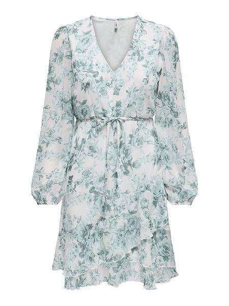 – z dodatkiem poliestru pochodzącego z recyklingu- dekolt: V- rękaw: bufiasty- zakończenie rękawów: elastyczne- zdejmowany pasek: tkanina- dolny brzeg: z falbankami- krój: litera A- wzór: kwiatowy