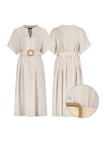 – dekolt: z rozcięciem- zapięcie: skrócona listwa guzikowa- szlufki na pasek: tak- detale: pasek- krój: taliowany- look: jednokolorowy